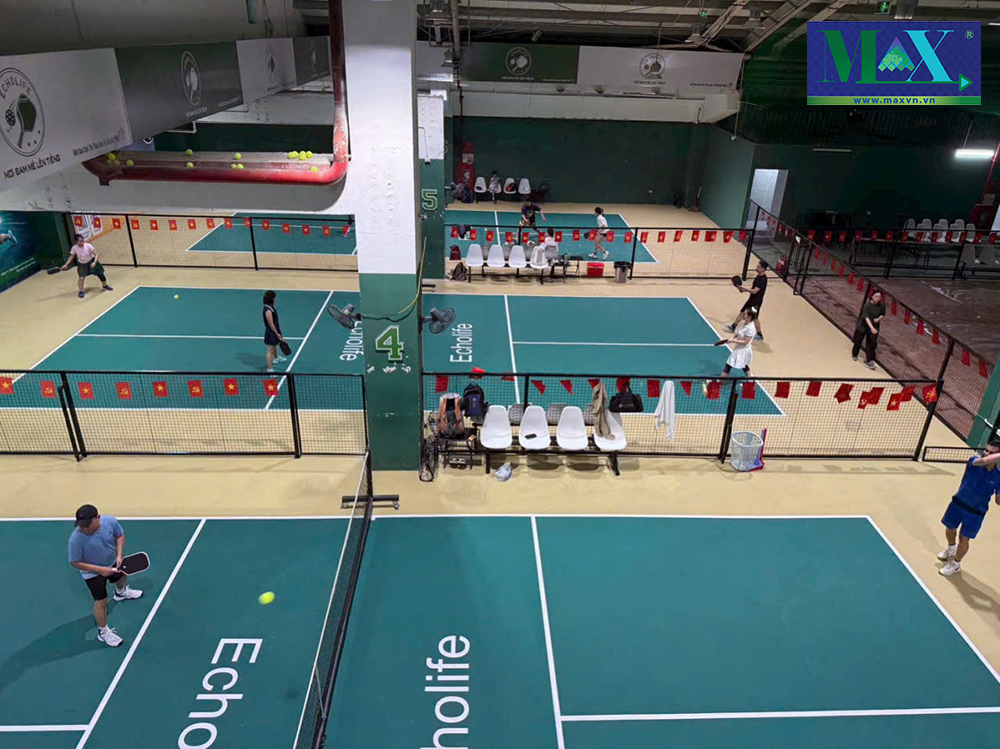 Sân Pickleball tại trung tâm thể thao Hà Đông nổi bật với quy mô lớn và thời gian hoạt động linh hoạt, phù hợp cho người chơi ở mọi trình độ. Sân nằm ở vị trí trung tâm, giúp việc di chuyển và tiếp cận trở nên dễ dàng.