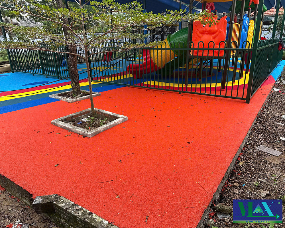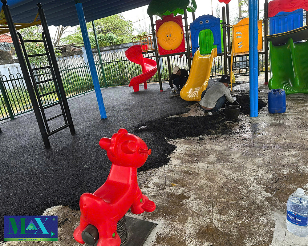 Thi công sân chơi hạt cao su EPDM giảm chấn 25mm