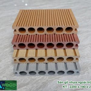 - Sàn gỗ nhựa ngoài trời có dạng tấm chữ nhật đi kèm khung xương, bề mặt nhẵn có sọc dọc và nhiều màu để lựa chọn.