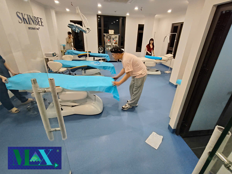 Thi công thảm Vinyl bằng thảm vinyl kháng khuẩn mang lại độ bền cao, chịu được mài mòn từ các hoạt động hàng ngày, phù hợp với các khu vực có lưu lượng người qua lại cao như hành lang bệnh viện hoặc khu vực công cộng. Khả năng kháng hóa chất cũng đảm bảo thảm không dễ bị hư hại bởi các chất tẩy rửa hoặc các tác nhân bên ngoài, giúp duy trì tính thẩm mỹ và chức năng của thảm trong thời gian dài.